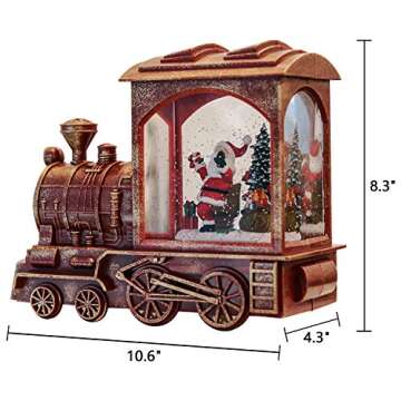 Eldnacele Singing Christmas Train Snow Globe with Music & Timer, Lighted-up Battery Operated Glittering Lantern for Christmas Table Centerpiece Decoration and Gift- Santa