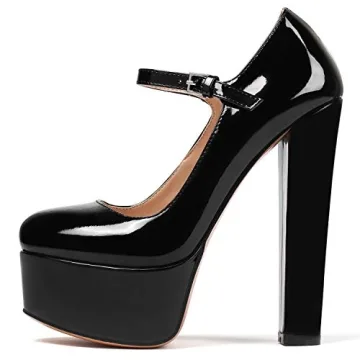 These platform heels are a must-have for your shoe collection, ideal for occasions such as evening parties, weddings, proms, and classy dinners. Their stunning design and comfortable construction make them perfect for adding a touch of sophistication to any outfit. The gleaming finish of these black pumps also complements a variety of styles, ensuring they can easily transition from day to night.