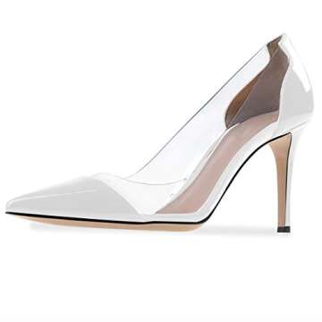 Eldof Womens High Heel Clear Pumps | 8CM 3inch Pointy Cap Toe Transparent PVC Stilettos | Wedding Dress Event Pumps Shoes White US10.5