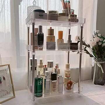 Elebac Bathroom Organizer Countertop Storage 3-Tier Acrylic Vanity Tray, Sink Counter Dresser Makeup Organizer for Cosmetic Skincare Lotion Perfume, Multi-Functional Anti-Slip Organizer for Bathroom