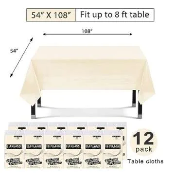 Eleclassi Ivory 12 Pack Premium Disposable Plastic Tablecloth 54 x 108 in - Plastic Table Cloths for Parties Disposable Tablecloth for Rectangle Tables Up to 8 Ft - Rectangle Tablecloth
