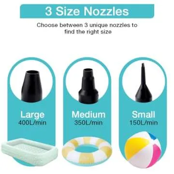 Electric Air Pump,Portable Quick-Fill Air Pump, Air Mattress Pump with 3 Nozzles for Inflatable Boat, Air Mattress Beds,Swimming Ring.Compatible with Home and car Adapter by Inscool (110V AC/12V DC)