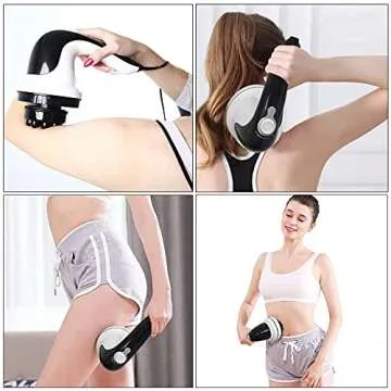 Show more Discover the transformative power of relaxation with our Electric Back Massager, the ultimate handheld device designed to rejuvenate your body and enhance your wellness journey. This versatile massager features four interchangeable heads, each crafted to provide a unique therapeutic experience. The first two massage heads target cellulite, addressing problem areas like arms, abdomen, thighs, and buttocks to effectively diminish stubborn dimples. The deeper muscle massage head is perfect for promoting drainage in your legs and sculpting your figure, while the fourth head ensures your skin is smooth and polished by effectively removing dead skin cells.