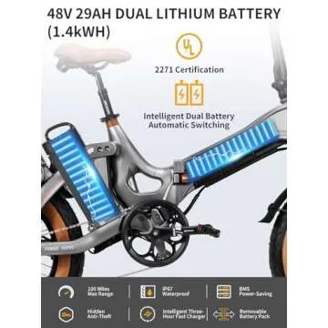 Show moreRediscover the joy of riding with our state-of-the-art Electric Bike for Adults. Powered by an incredible 1400W peak motor and equipped with a robust 48V 29AH removable battery, this electric bike is designed for optimum performance and longevity. It reaches speeds of up to 28 MPH and delivers an impressive range of 100 miles on a single charge, making it perfect for both daily commutes and exhilarating weekend adventures. With a user-friendly folding frame, full suspension system, and hydraulic brakes, you can enjoy a smooth, safe ride no matter your destination.