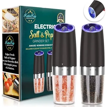 Show more Introducing the JOBKIM&K Electric Salt and Pepper Grinder Set, a revolutionary addition to your kitchen that encapsulates innovation and style in one sleek package. This stunning product features an advanced gravity sensing design, allowing for effortless operation. No need to press buttons or twist uncomfortable grinding mechanisms; simply flip the grinder upside down, and it will automatically start grinding your favorite spices. With a generous capacity to hold '2/3 cups' of spices each, you can enjoy prolonged use without frequent refills, making it perfect for both everyday cooking and special occasions.
