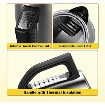 temperature control and safety measures set it apart. Competitors might lack the versatility of preset settings, making this kettle not just a cooking device but a smart addition to any conscious kitchen.