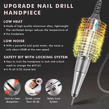 Electric Nail Drill Machine 30000rpm - Ejiubas Professional Nail Drill High Speed Low Vibration Low Heat Electric Efile Drill for Shaping Buffing Removing Acrylic Nails Grinder Manicure Pedicure