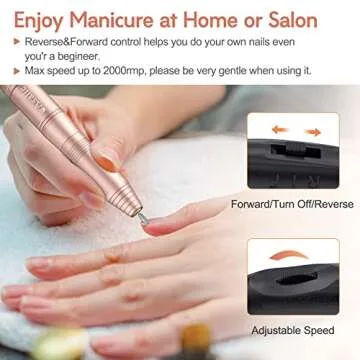 Electric Nail Drill, Professional Acrylic Dip Nail Drill Machine USB Electric Nail Filer Kit Efile Nail Tools for Manicure Pedicure with Drill Bits, Sanding Bands, Metal Nail File, Gold