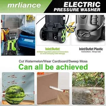 Show more Introducing the Electric Pressure Washer, an exceptional 2000W high-power cleaning machine designed to conquer even the most stubborn dirt and grime around your home, patio, and garden. With an impressive flow rate of 2.11 GPM, this pressure washer delivers efficient and powerful cleaning performance, making your outdoor spaces shine like new. Equipped with a versatile set of 4 interchangeable nozzles and a foam cannon, it provides a customized cleaning approach for various surfaces, from delicate car exteriors to tough driveways.