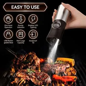 Electric Salt and Pepper Grinder Set, HOMCYTOP Gravity Automatic Salt & Pepper Mill Refillable with Rechargeable Base, USB Cables, 2 Adjustable Coarseness Mills, White LED Light, One Hand Operation