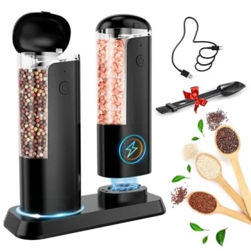 Show moreIntroducing the stunning Electric Salt and Pepper Grinder Set, designed to elevate your culinary experience like never before! Perfectly crafted for both novice cooks and seasoned chefs alike, this rechargeable grinder set combines functionality with modern aesthetics. With its innovative one-handed operation, seasoning your favorite dishes has never been easier; simply tilt the grinders and let them do the work! Ideal for a variety of spices, including sea salt, black pepper, cumin, and sesame, this versatile tool will quickly become an essential part of your kitchen.