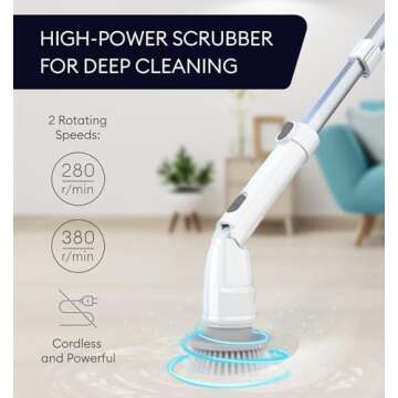 Electric Spin Scrubber, 360 Cordless Powerful Scrub Brush for Cleaning Bathroom, Tile, Floor, Tub & Shower with Adjustable Extension Handle and 3 Replaceable Rotating Brush Heads (Packaging May Vary)