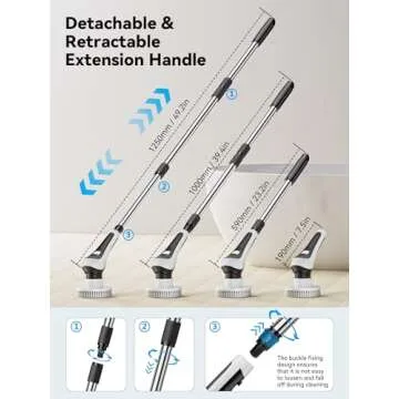 Electric Spin Scrubber,Cordless Cleaning Brush with Power Display Screen,IP68 Waterproof Shower Cleaning Brush with 8 Replaceable Brush Heads,Adjustable & Detachable Handle and 2 Adjustable Speeds