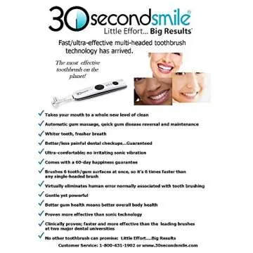 Electric Toothbrush, Hydrabrush 30 Second Smile Shine TSS300 Rechargeable Toothbrush with Reciprocating Motion, 2 Brushing Speeds, 2 Brush Heads