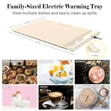 Show more Introducing the Electric Warming Tray with Adjustable Temperature, your ultimate companion for effortlessly serving food at the perfect temperature! Measuring an impressive 23.9 Inch x 15.7 Inch x 0.27 Inch, this spacious warming tray is designed to fit various dish sizes, ensuring your buffet, party, or family meal remains warm and inviting. Crafted with an innovative heating wire design, it guarantees uniform heat distribution, allowing you to relish quality time with your guests rather than fretting over whether your dishes are still warm.