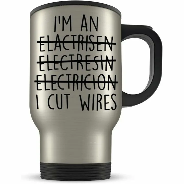 Introducing the hilarious and functional Electrician gift travel mug, the perfect present for the electricians in your life. Whether it's a Birthday gift, Christmas present, or just an everyday token of appreciation, this unique travel mug is designed to make someone smile and enjoy their daily cup of coffee or tea. Crafted from durable stainless steel, this 14 oz travel mug combines utility with a touch of humor, making it a standout choice among gifts.