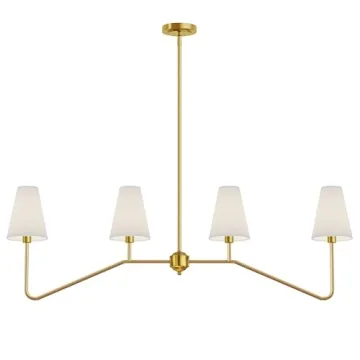 Electro bp;47" W 4-Light Linear Kitchen Island Lighting Fixture Classic Chandeliers Polished Gold with White Linen Shades for Dining Table,E12,160W