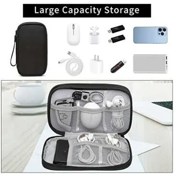 Electronics Organizer Travel Case, Small Cable Organizer Bag, Electronic Accessories Carry Case Water Resistant Double Layers Tech Storage Bag, Travel Essentials for Cord, Charger, Earphone, Black