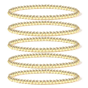 Elegance 11 designs 14K Gold Plated Bead Ball Bracelet Stretchable Elastic Gold Beaded Bracelets for Women