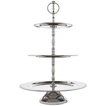 Show moreIntroducing the Elegance 3-Tier Beaded Buffet Serving Stand, a stunning blend of beauty and functionality crafted in high-quality stainless steel. This exquisite piece features a delicate beaded edge on plates of varying sizes (7.5", 10", and 13"), enhancing any buffet table or gathering with its luxurious flair. Ideal for displaying everything from hors d’oeuvres to pastries, this serving stand ensures that your culinary creations take center stage. The easy carry handle makes transporting your display effortless, perfect for both intimate family gatherings and large parties. Hand wash and dry for easy maintenance, ensuring this piece remains a staple in your kitchen for many years to come.