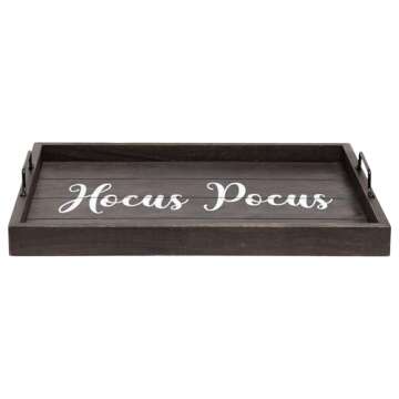 Elegant Designs, 15.50" x 12", Decorative Wood Serving Tray w/Handles, Black Wash Hocus Pocus (HG2000-KHP)