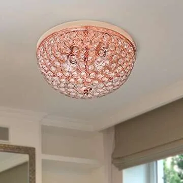 Elegant Designs FM1000-RGD Elipse Crystal 13 Inch Modern Metal 2 Light Bowl Shaped Ceiling Flush Mount Fixture, Rose Gold