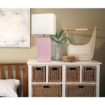 Show moreIlluminate your space with the Elegant Designs LT1025-PNK Modern Leather Table Lamp. This stunning lamp combines a vibrant pink leather-wrapped base with a refreshing white rectangular shade, offering a modern and stylish look that fits seamlessly into any decor. Its lightweight design, weighing only 3.28 pounds, ensures easy placement without sacrificing durability. The combination of robust MDF and metal construction creates a stable foundation, making it the perfect accent piece for your bedside table, desk, or shelf.