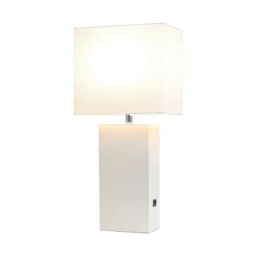 Elegant Designs LT1053-WHT Modern Leather Table Lamp with USB and White Fabric Shade, White(Pack of 1)