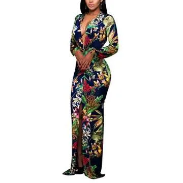 Elegant Floral Formal Dresses for Women Sexy Bodycon V Neck Cocktail Floor Length Prom Long Dress for Evening Party(2X-Large) Flower