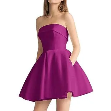 Elegant Graduation Short Gowns, Women's Satin Strapless Homecoming Gowns, A-line Dresses Ivory