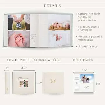 Elegant Linen Photo Album - 200 Acid-Free Pockets for 4x6 Pics - Perfect for Weddings & Gifts