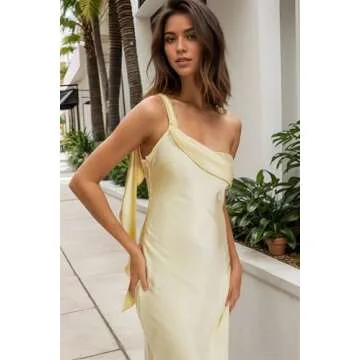 Show moreIntroducing the Elegant Maxi Bridesmaid Dress Ruffled Flutter One Shoulder Prom Gowns Satin Mermaid Formal Guest Dress GL0051-Lemon – the epitome of sophistication and charm, designed specifically for those unforgettable occasions. This stunning dress combines exquisite design elements with premium materials, making it a must-have for your wardrobe. Crafted from soft, thin simulation silk satin, this gown is a breath of fresh air for summer weddings and special events. The enchanting ruffled flutter detail and the elegant one-shoulder style not only flatter a variety of body types, but also provide a unique and stylish silhouette that is sure to turn heads. Perfect for weddings, proms, and formal gatherings, this dress offers versatility alongside elegance, ensuring that you feel like the belle of the ball.