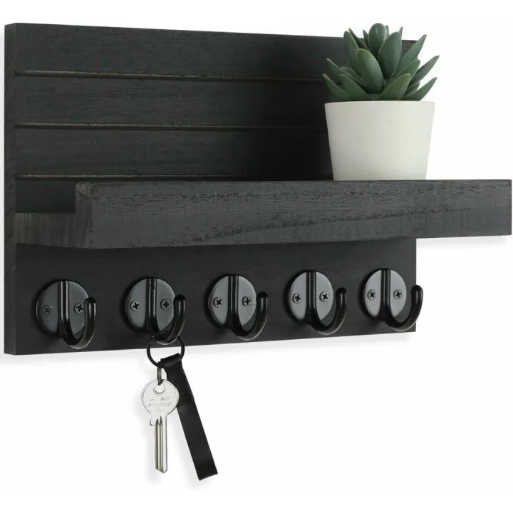 Elegant Paulownia Wood Key Holder & Mail Organizer with Shelf - Stylish Solution