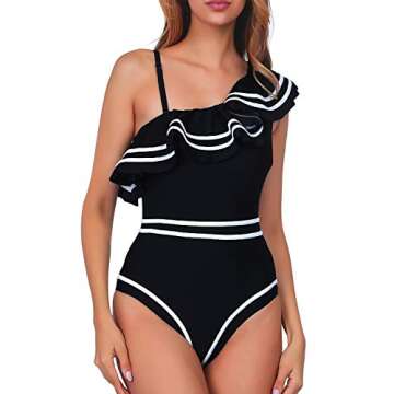 Elegant Taste Women's One Piece Swimsuit One Shoulder Ruffle High Waisted Bathing Suits Black Small Size