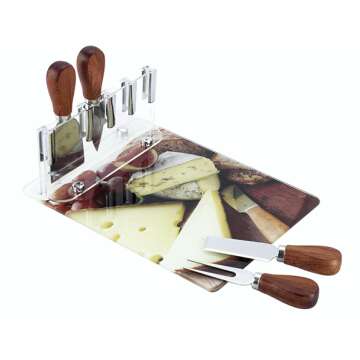 Elegant Tempered Glass Cheese Board & 4-Knife Set