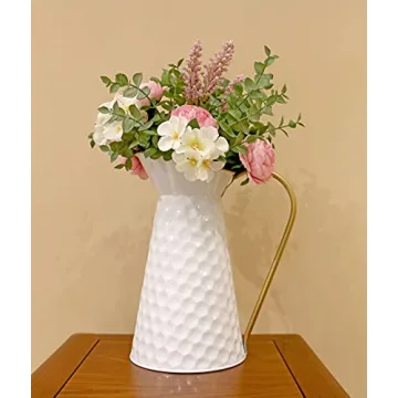 Elegant White Metal Decorative Flower Vase,Farmhouse Galvanized Pitcher,Rustic Milk Jug for Home Decor…