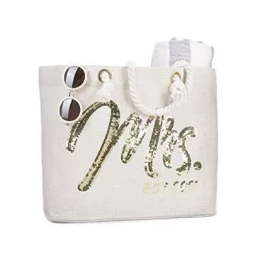 ELEGANTPARK Future Mrs. EST. 2021 Large Bride Tote Bag Personalized Wedding Bachelorette Bridal Shower Gifts Shoulder Bag Gold Sequin with Interior Pocket Jute
