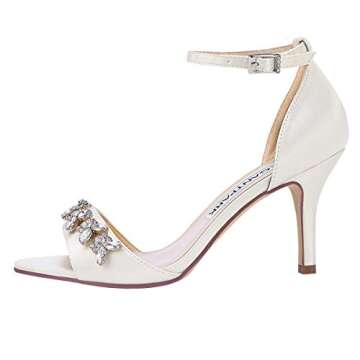 ELEGANTPARK Ivory Heels for Women Ankle Strap Wedding Sandals for Bride Peep Toe High Heeled Sandals Satin Prom Evening Dress Wedding Shoes US 7