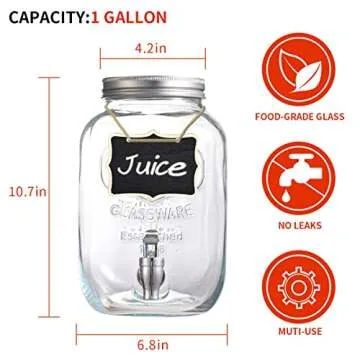 Eleganttime 1 Gallon Glass Drink Dispensers for Parties,2 Pack Beverage Dispenser with Fruit Infuser,Laundry Detergent Dispenser Punch Bowls Water Juice dispensers with Easy Flow Spigot for Outdoor