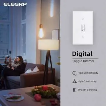 ELEGRP Digital Toggle Dimmer Switch for Dimmable LED, CFL and Incandescent Light Bulbs, Single Pole or 3-Way Toggle LED Dimmer Light Switch, Wall Plate Included, UL Listed, 1 Pack, White