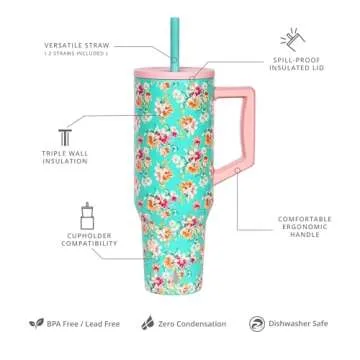 What sets this tumbler apart is its innovative design featuring two interchangeable straws—a standard straw for every day sipping and a wider straw specifically for denser beverages. Made from premium 18/8 food-grade stainless steel, the tumbler promises not only durability and safety, being completely BPA-free, but also aesthetic appeal with its charming Vintage Flower design. User reviews highlight just how cute and delightful this tumbler truly is!