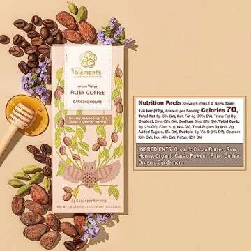Show more Indulge your senses with the Elements Truffles Filter Coffee Dark Chocolate Bar, a harmonious blend of rich flavor and health-conscious ingredients. This exquisite chocolate is crafted with inspiration from Ayurveda, the ancient Indian science of wellness, ensuring a product that not only tantalizes your taste buds but also aligns with your well-being. Each bar is a testament to quality and design, suitable for those who savor life’s luxuries without compromising on nutrition.