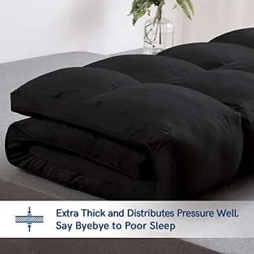 Show moreDiscover the true essence of comfort with the ELEMUSE Full Black Mattress Topper, meticulously designed to elevate your sleep experience. Crafted from premium materials, this mattress pad features tightly woven brushed microfiber fabric that is not only remarkably soft and breathable but also durable enough to resist wear and tear even after multiple washes. Unlike traditional mattress toppers, the ELEMUSE topper is double filled with 3D snow down alternative filling, providing a plush and cozy feel that cradles you as you sleep while ensuring a restful night's slumber without trapping excess heat.
