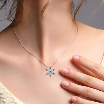 Introducing the Elensan Women's 925 Sterling Silver Blue Crystals Snowflake Pendant Fashion Necklace, a breathtaking piece of jewelry that seamlessly combines elegance and versatility. Crafted from high-quality 925 pure silver, the necklace is both durable and hypoallergenic, thanks to the rhodium-plated surface that inhibits allergic reactions. Illuminate your wardrobe with this stunning accessory that features a beautifully designed snowflake pendant adorned with AAA-grade cubic zirconia...
