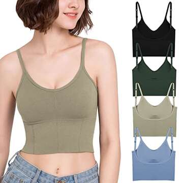 Show moreIntroducing the Eleplus 4 Pieces Comfy Sleep Bra for Women, your new go-to choice for relaxation and style! This pack of four comes in a delightful mix of colors, designed to complement your wardrobe while providing all-day comfort. Crafted for the modern woman, these camisoles feature an innovative built-in bra that allows you to embrace a wire-free experience without sacrificing support. The adjustable shoulder straps ensure a perfect fit for every body type, catering specifically to sizes Small to Medium.