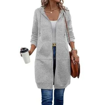 ELESOL Women's Casual Long Fleece Hoodies Sweatshirt Coat Pockets Zip up Outerwear Hooded Jacket Tops, Gray Large