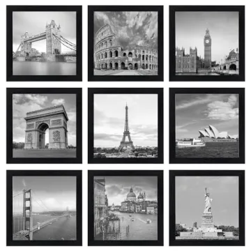 Show more Transform the way you display your cherished memories with the eletecpro 8x8 Picture Frames Set. This exceptional set features nine classic gallery wall frames that are perfect for turning any wall into a stunning showcase of your favorite photographs. Designed with practical versatility in mind, each frame can elegantly display both 4x4 inch photos with a mat and 8x8 inch photos without a mat. Whether you want to craft a beautiful collage in your living room or create a personalized accent wall in your bedroom, these frames will make your moments vivid and unforgettable.