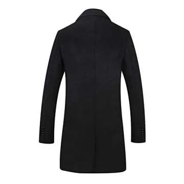 ELETOP Men's Wool Coat Winter Long Trench Coat Classic Business Overcoat Top Pea Coat 1811 Black M