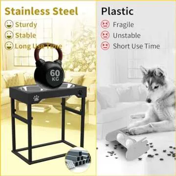 Elevated Dog Bowls, Stainless Steel Raised Dog Bowls Adjustable to 8 Heights, 2.75", 7.5", 10.5'', 14''-20'', for Medium & Large Sized Dogs, with 2 Stainless Steel Dog Bowls for Food & Water