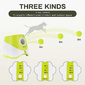 Elevon Automatic Dog Ball Launcher, Indoor/Outdoor Interactive Dog Toy with Three Ranges, Includes 6 Mini Tennis Balls and a Data Line, Suitable for Small and Medium-Sized Dogs, Green